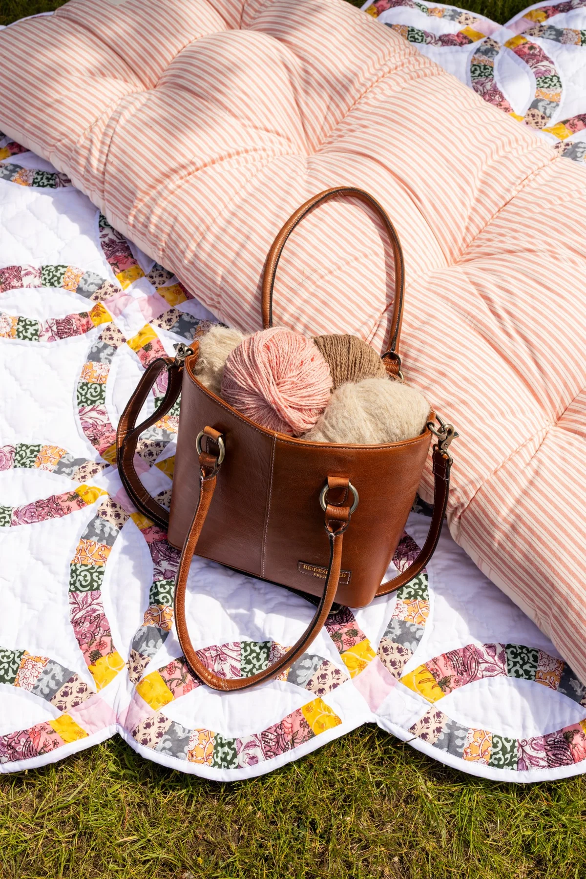 Project 106 — елегантна сумка через плече, створена для зручного зберігання пряжі та вʼязальних проєктів у дорозі. Ідеально підходить як для щоденного використання, так і для подорожей.